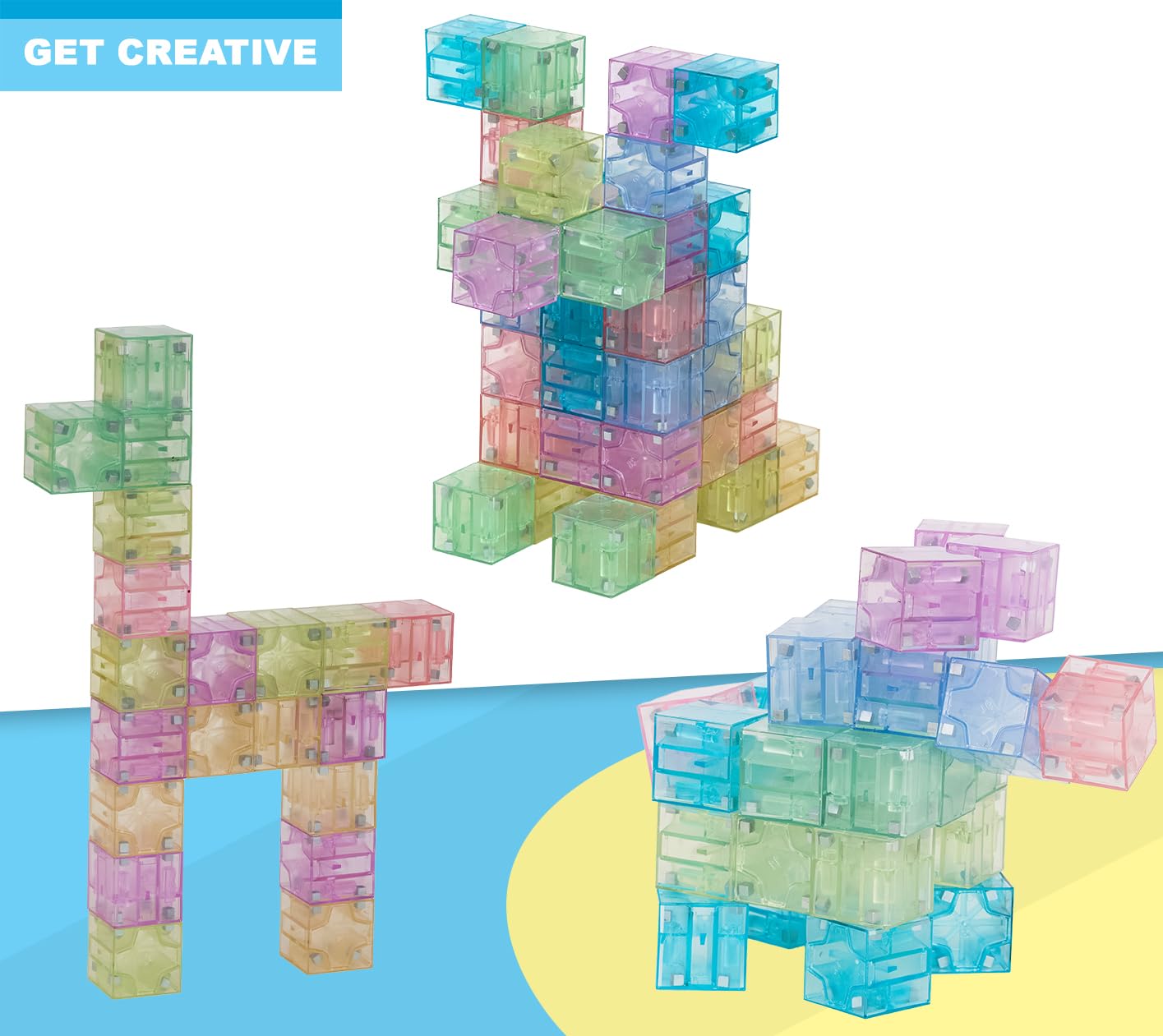 LET YOUR CREATIVITY RUN WILD! – Transparent DigitBlocks Pastel cubes attach tightly together, allowing you to create limitless designs. DigitBlocks stimulate creative thinking, engaging both the right and left side of your brain. Use problem solving skills to copy designs, or use your creativity to create your own designs. With multiple DigitBlock kits, build large sculptures…The possibilities are only as limited as your imagination!