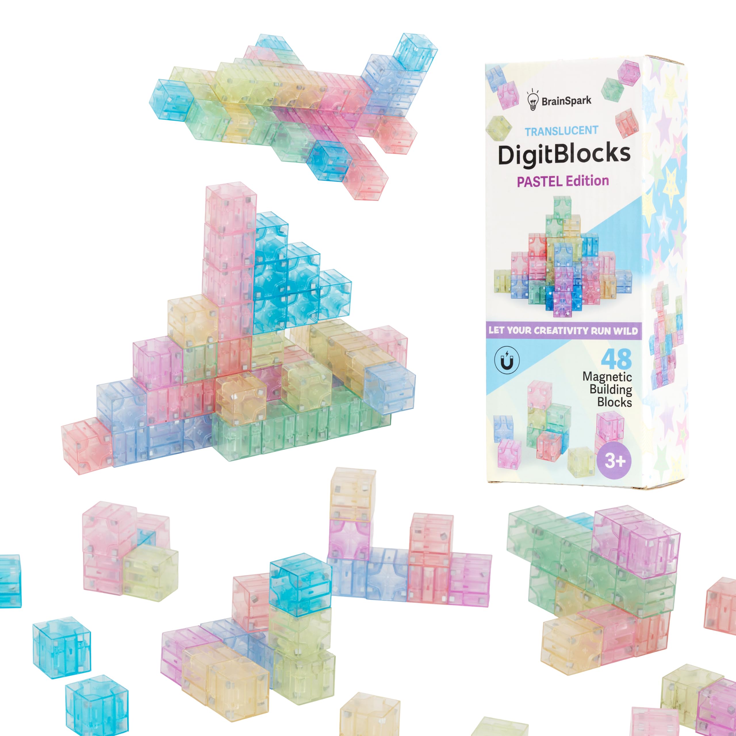 FIDGETS FOR YOUR KIDS DIGITS! – The Original Pastel Clear DigitBlocks 8 Different Colors! DigitBlocks fidget cubes are made of premium ABS plastic material, with 8 high-quality magnets in each cube corner. Each package contains 48 multi color magnetic blocks, soft high quality carrying bag and idea book.